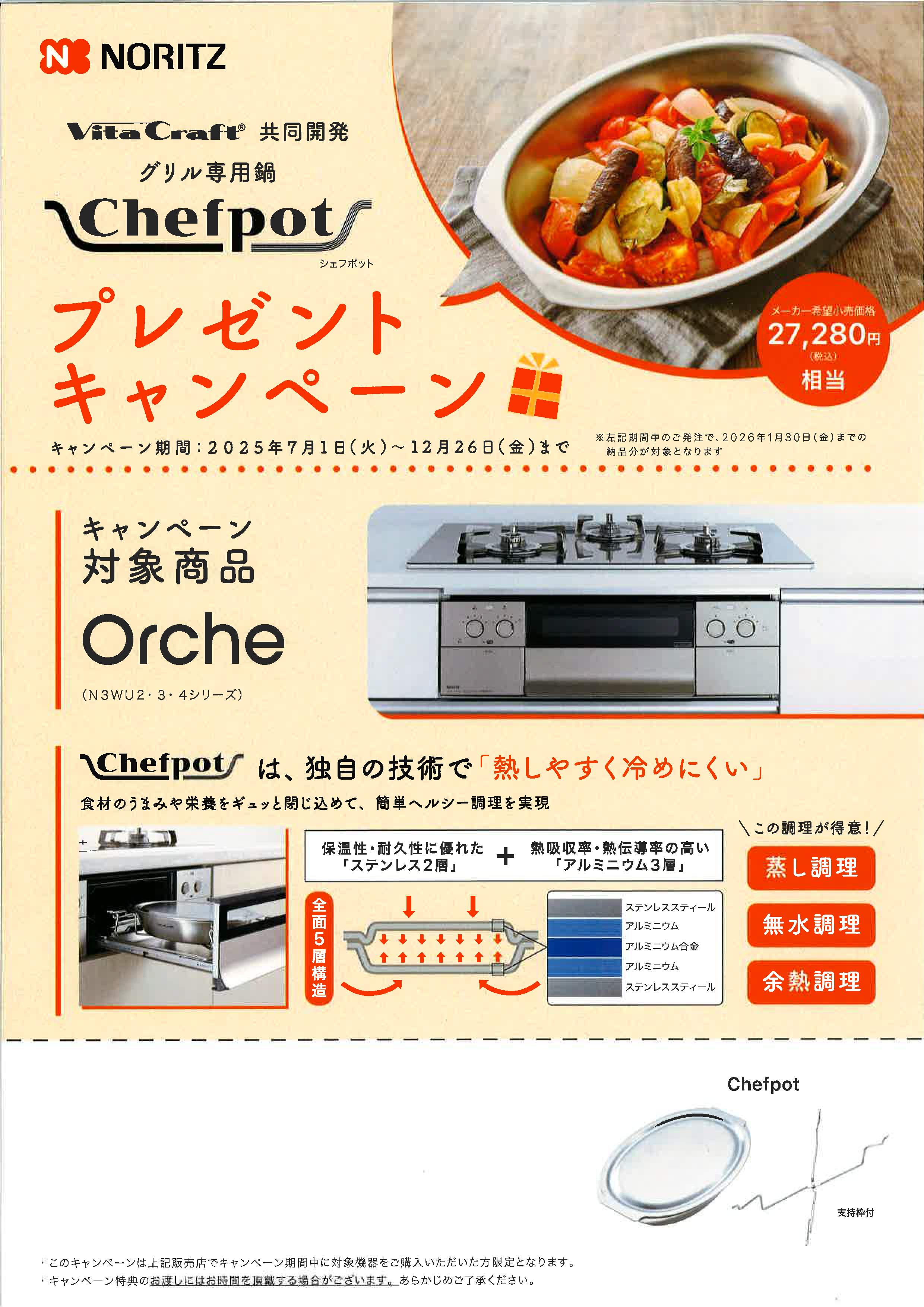 >TOP >ビルトインガスコンロ >ノーリツ >オルシェ「Orche」 >天板幅60cm >N3WU3PWASKSTESC