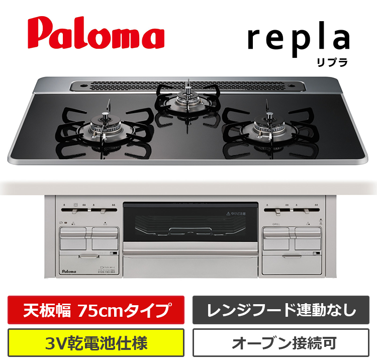 >TOP >ビルトインガスコンロ >パロマ >リプラ「repla」 >天板幅75cm >PD-509WS-75CK