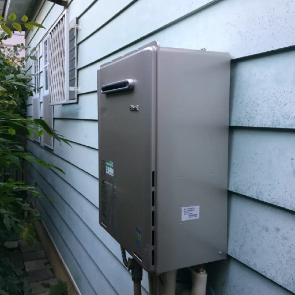 据置設置タイプから壁掛タイプに変更しました。壁掛にすることで給湯器が浸水する心配も改善されました。 ガス給湯器などの一般的なメーカー製品は災害による保証は一切ありません。今回のお客様は最近の雨の多さから壁掛タイプを希望されました。