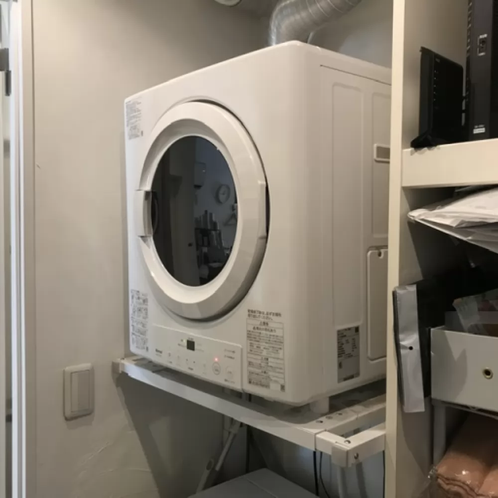 25年使った乾太くんの買替えです。設置場所が洗濯機の真上でないのでリフォームに合わせて壁の下地補強を行い、壁吊形のフィットラック(3Kg乾太くん専用)を使いました。金属の足が無いのでスッキリ納めることができてよかったです。商品上、仕方ないですが、フィットラックの棚板の奥行が600mmで本体が前寄り設置になったのは惜しかったです。